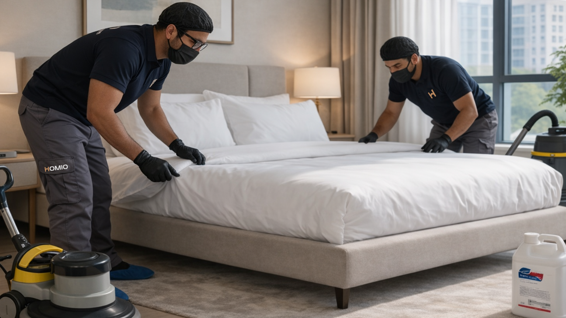 Thorough cleaning of beds, bathrooms, furniture, carpets, and floors.